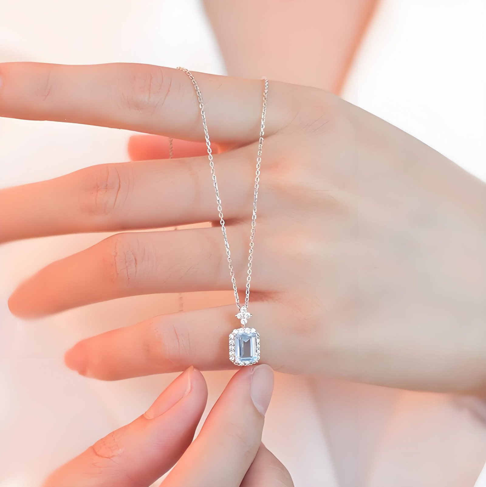 Elegant S925 silver aquamarine necklace with zirconia accents. Lightweight, adjustable, and perfect for everyday wear or special occasions.