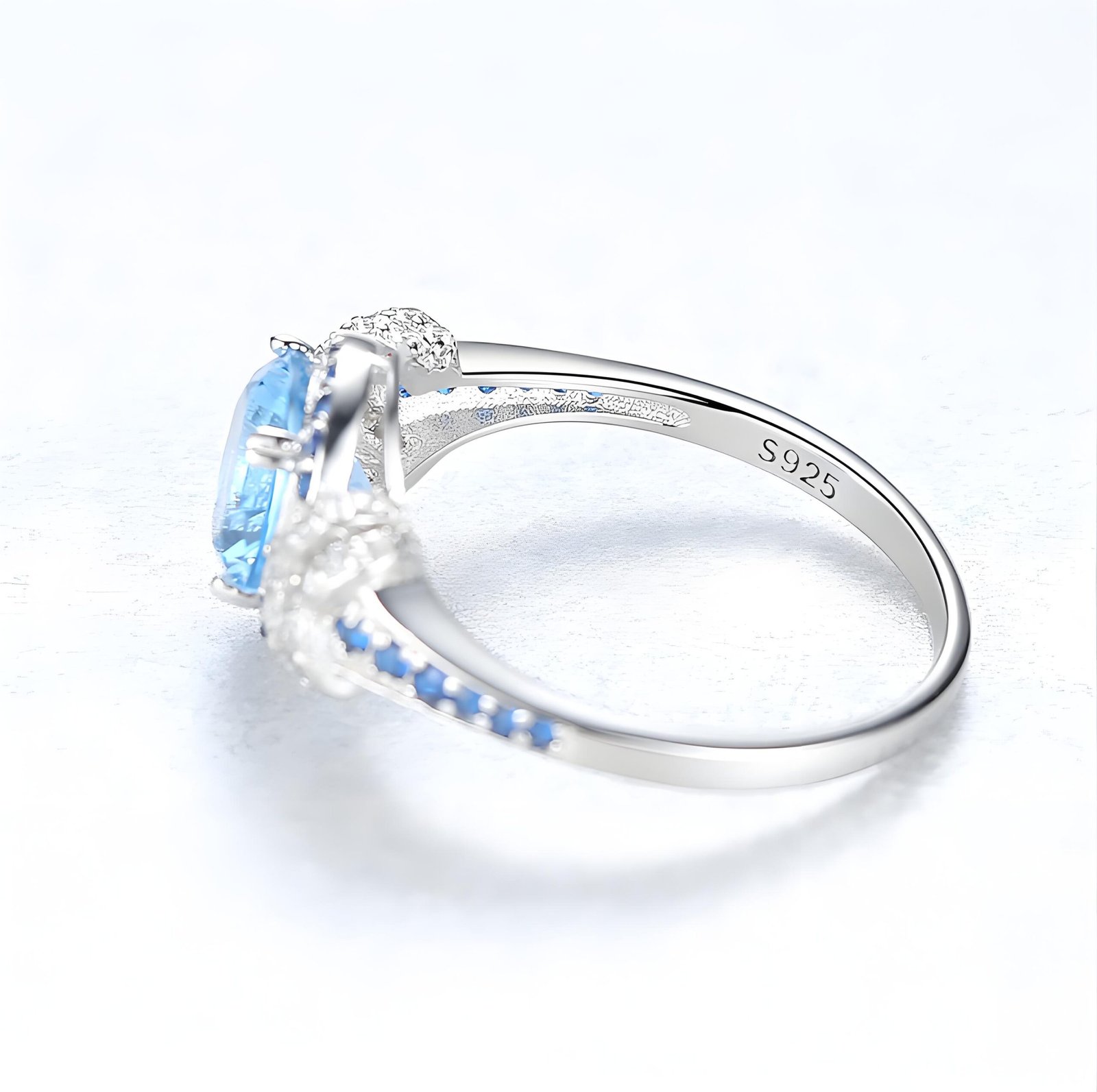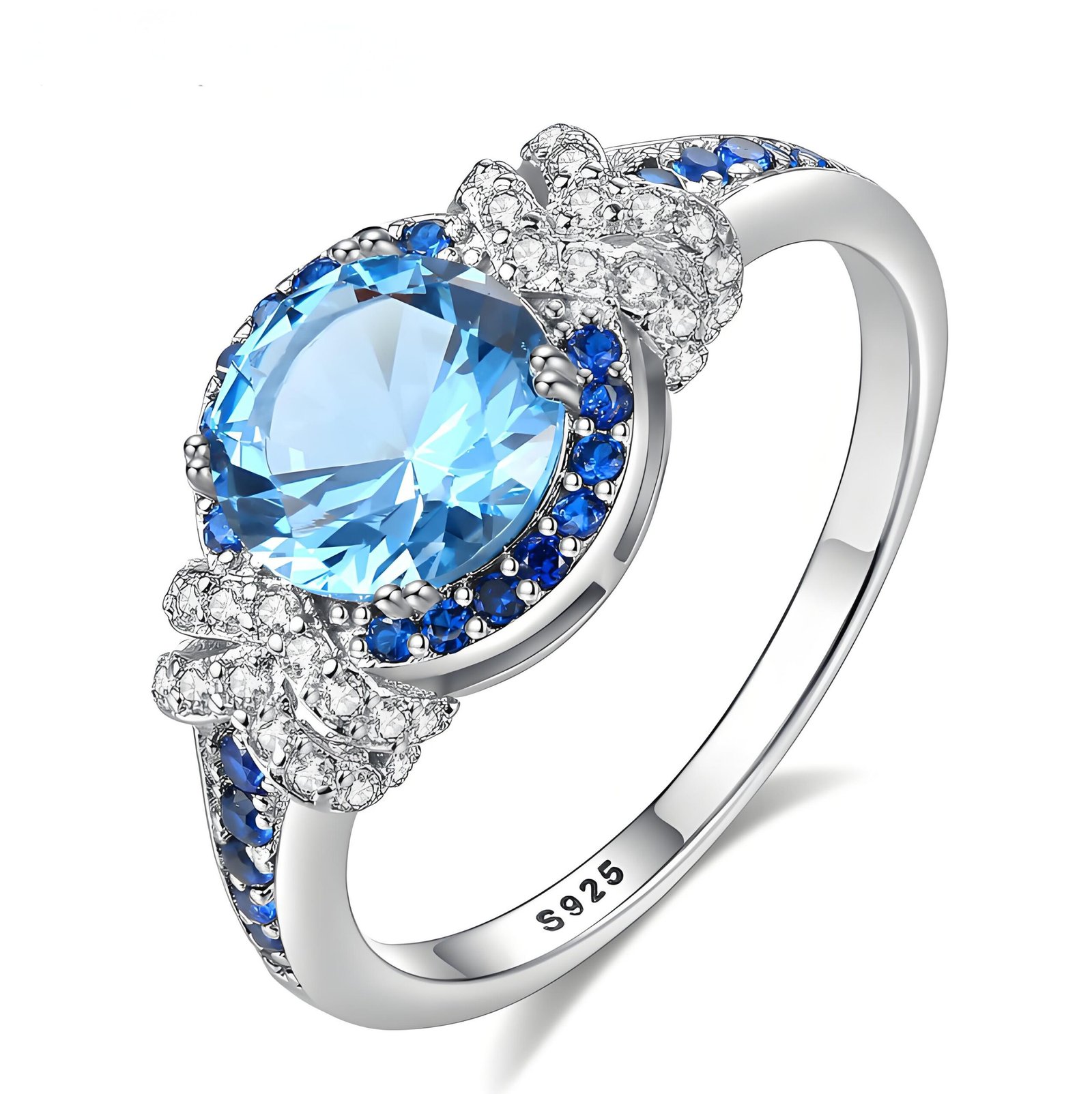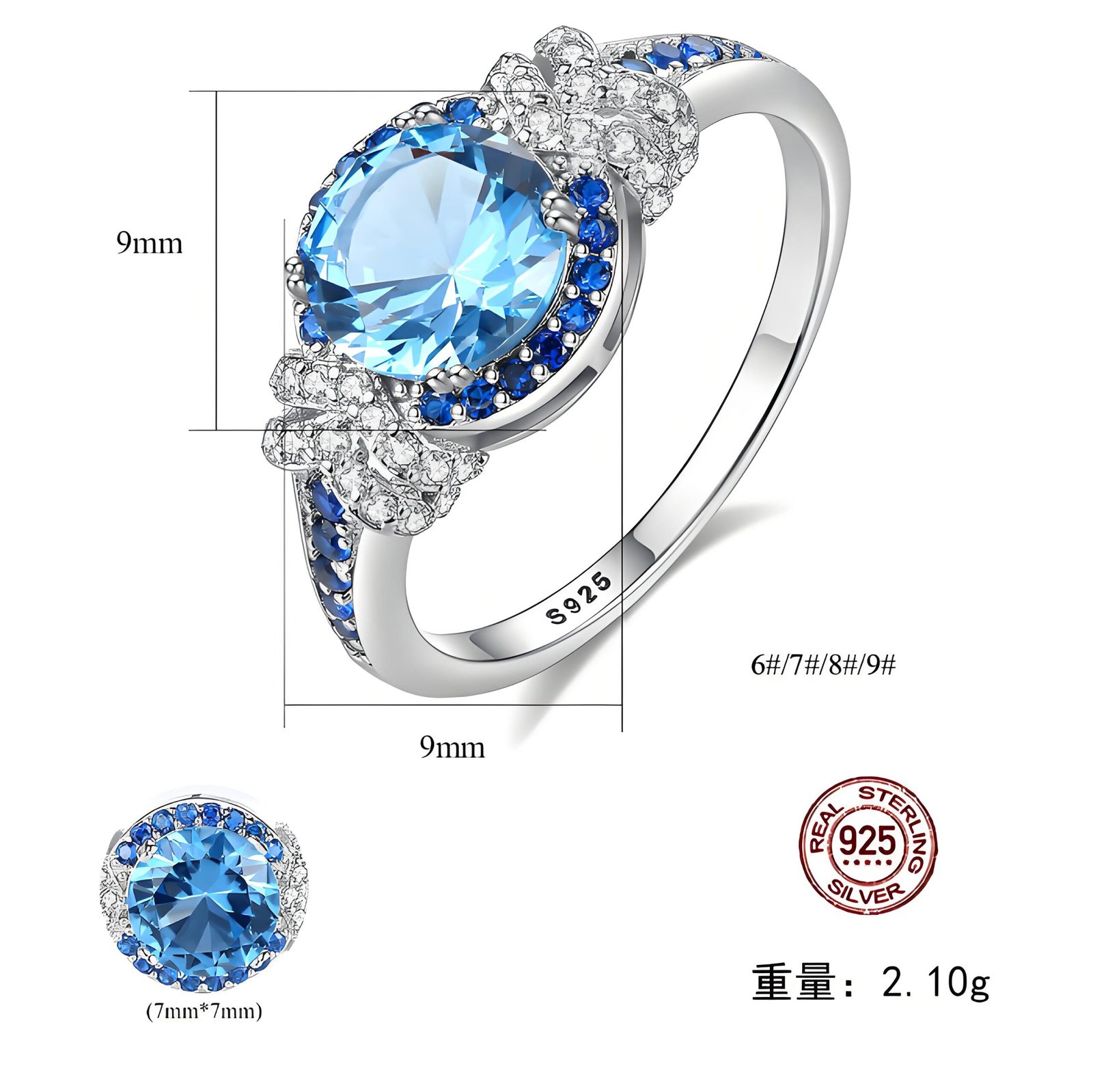 Elegant S925 silver ring featuring a 9mm blue topaz gemstone. Lightweight at 2.1g, perfect for both everyday wear and special occasions.