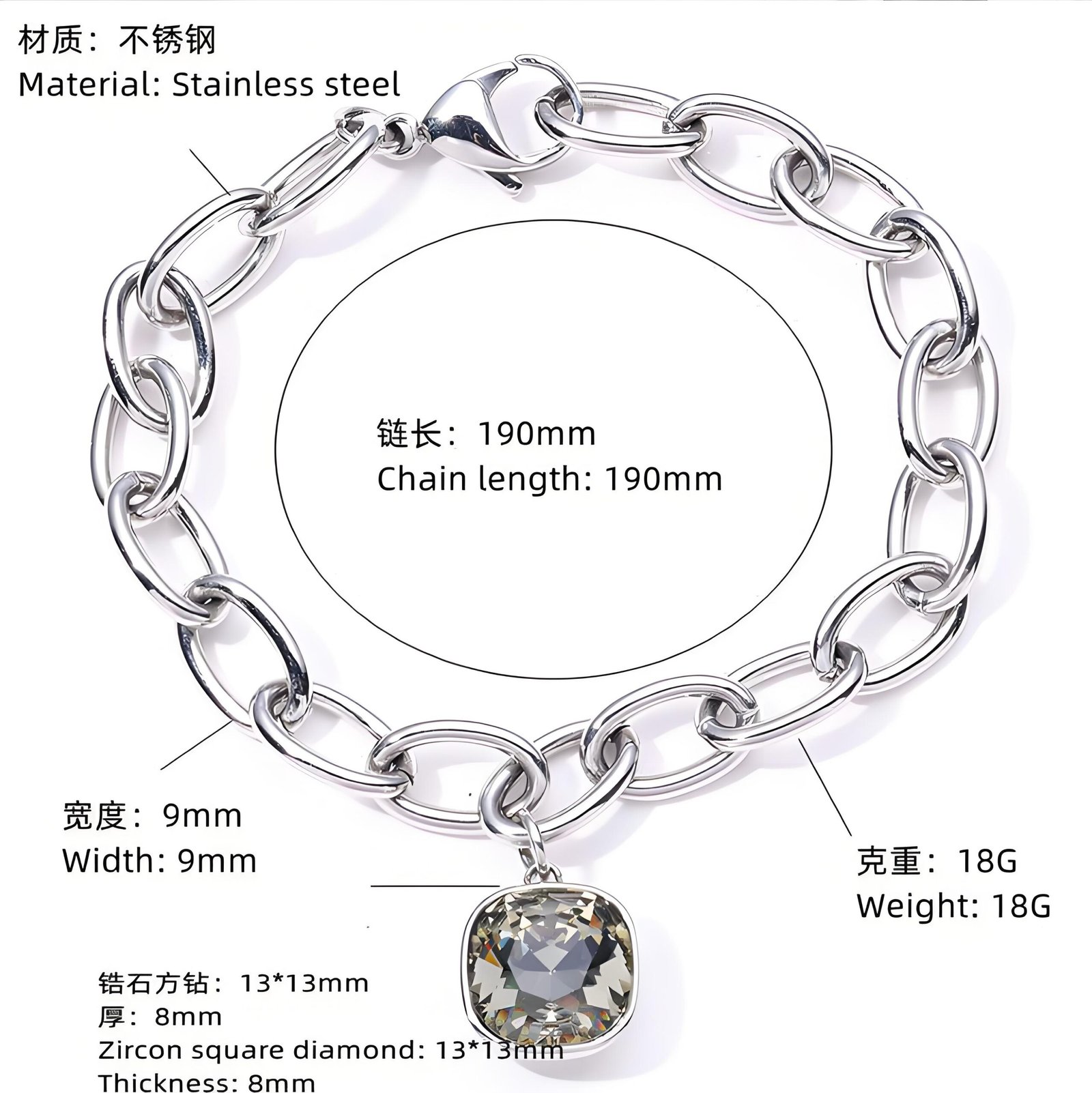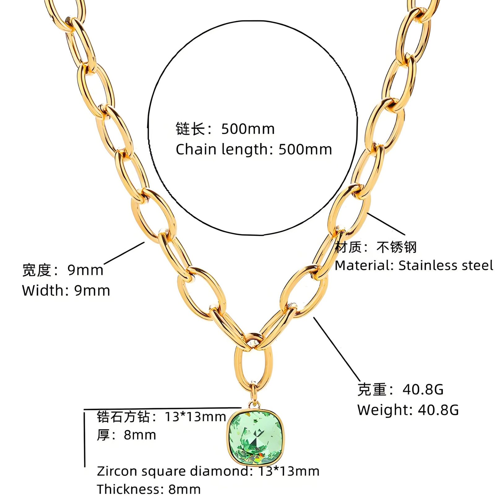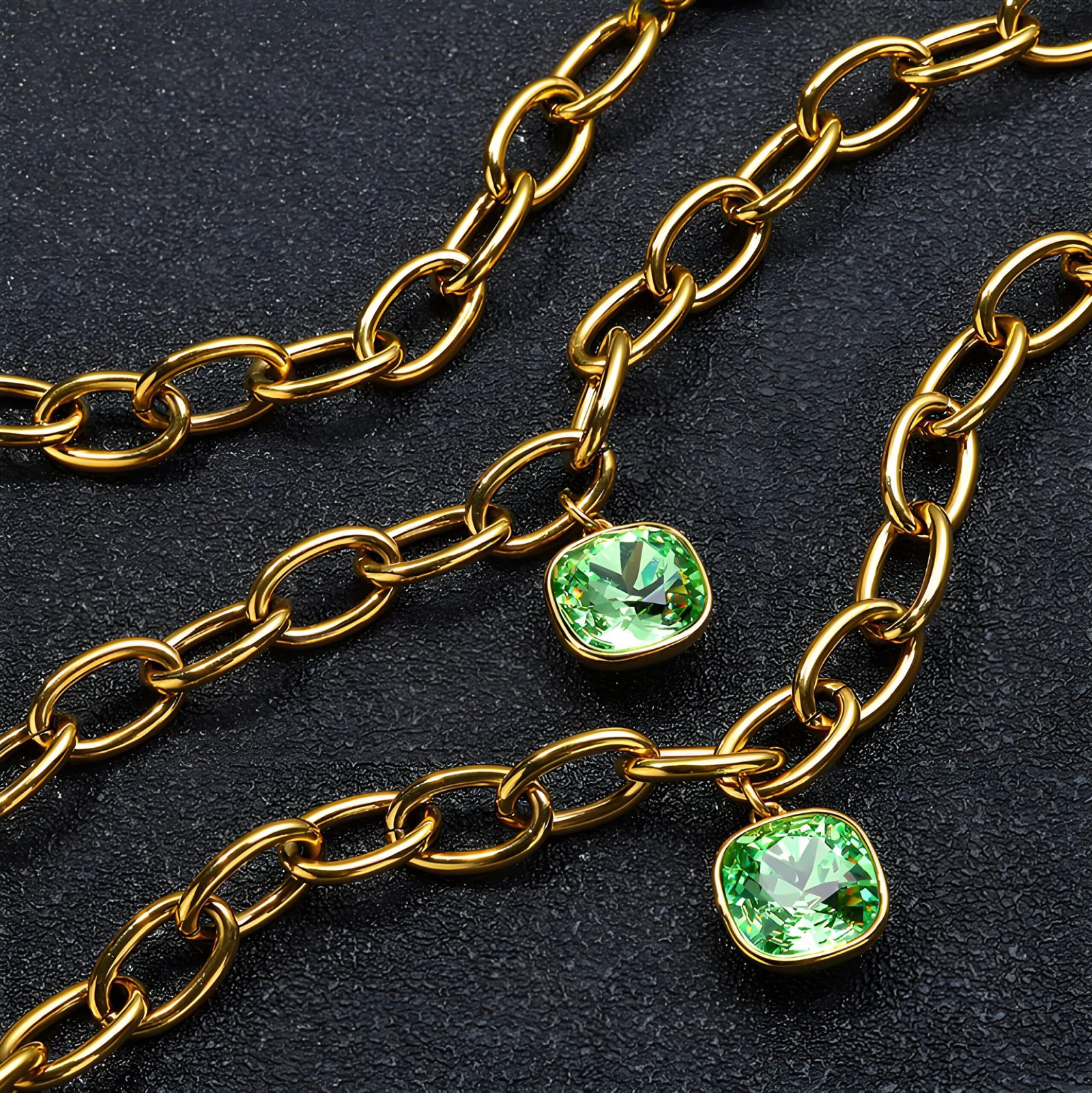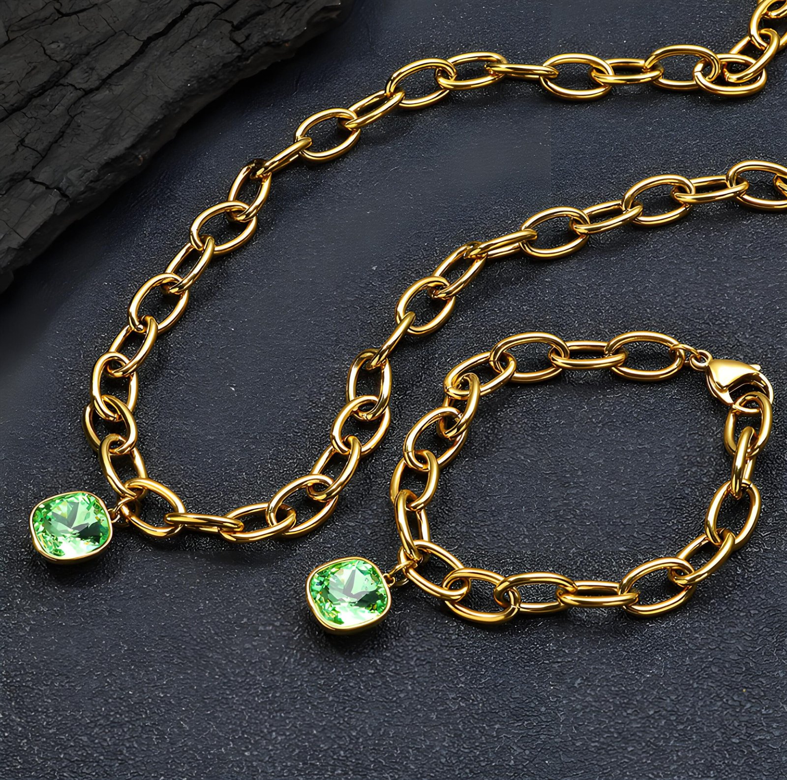 Elegant gemstone necklace and bracelet set made of titanium steel with silver plating and zirconia accents. Stylish, durable, and perfect for gifting