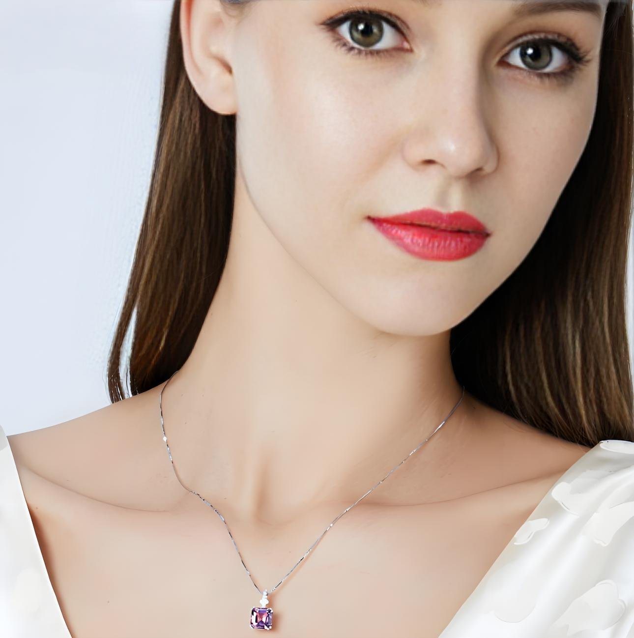Elegant S925 silver necklace with a 16×8mm blush morganite stone. Lightweight at 2.86g—perfect for daily elegance or special occasions.