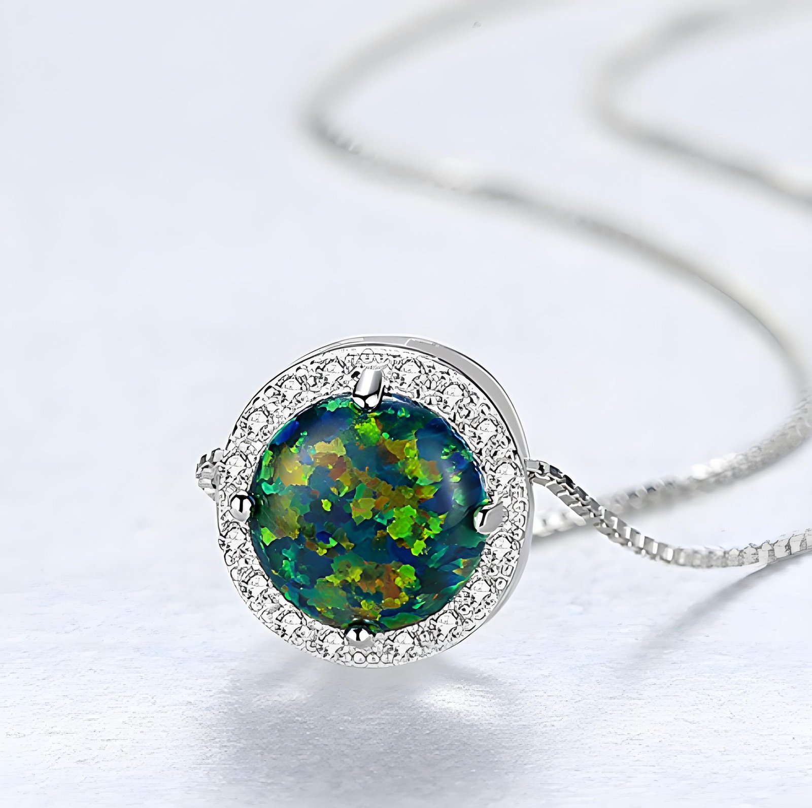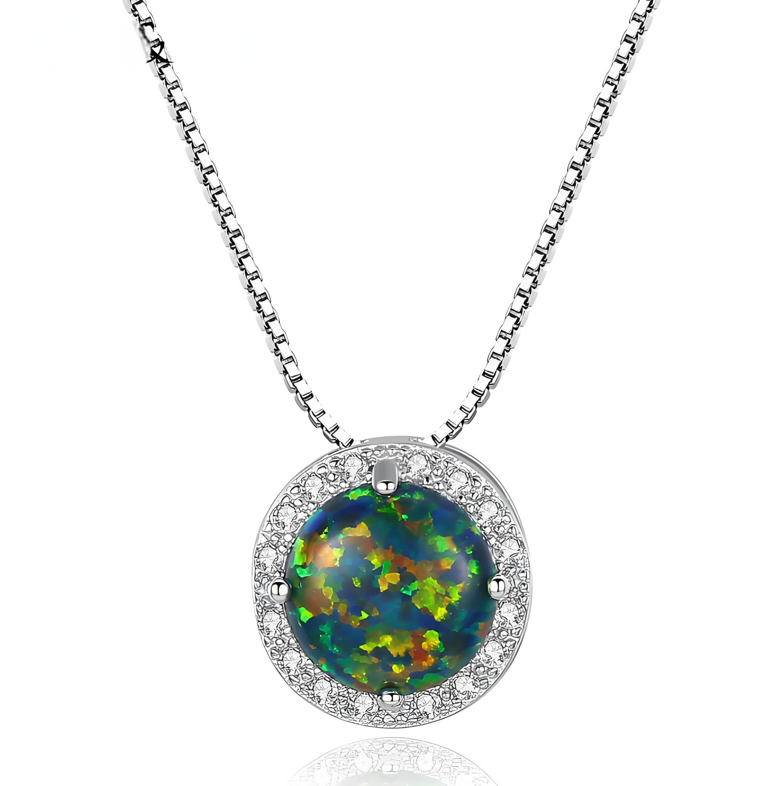 Elegant S925 opal necklace featuring a 10mm pendant with vibrant color play. Lightweight, timeless, and perfect for everyday wear or gifting.